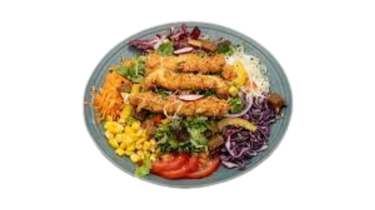 Gemischter Salat mit knusprigen Hähnchenstreifen
