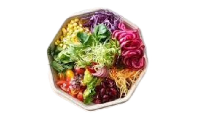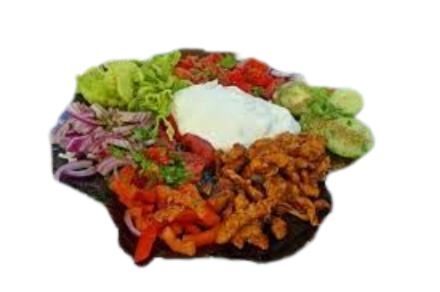 Tomaten, Gurken, Paprika, Zwiebeln, Oliven, Mais, Karotten und milde Peperoni