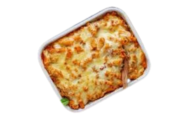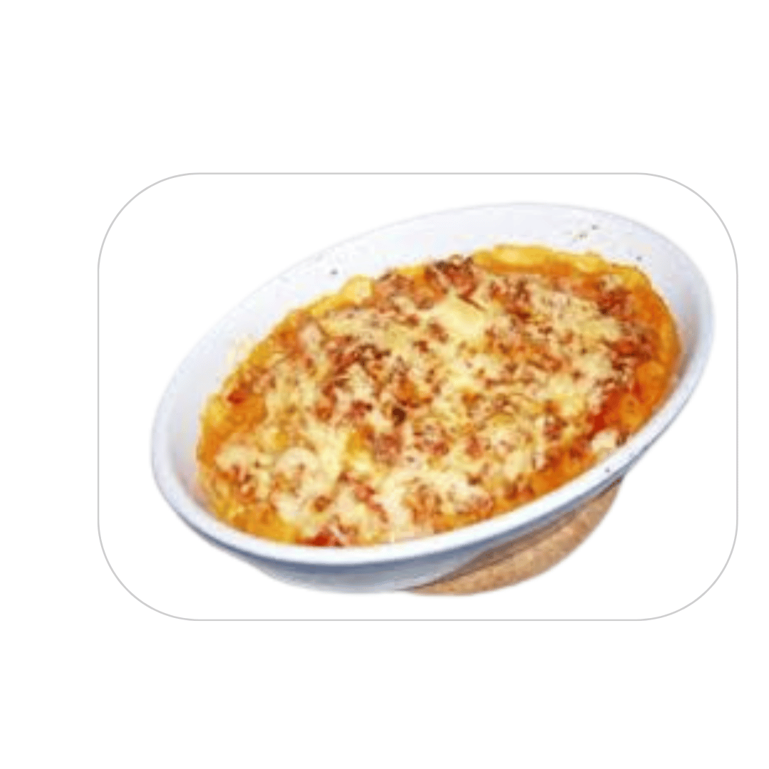 mt Bolognese, Bechamelsoße und Käse überbacken