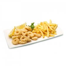 8 Stück , mit Pommes frites und alkoholfreies Getränk 0,33l serviert