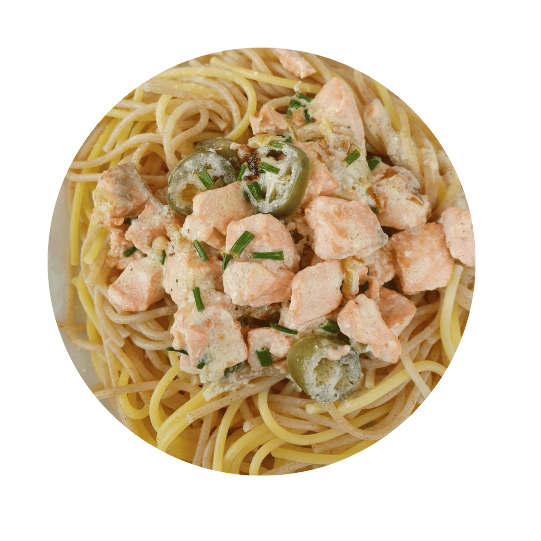 mit Sahnesoße und Lachs