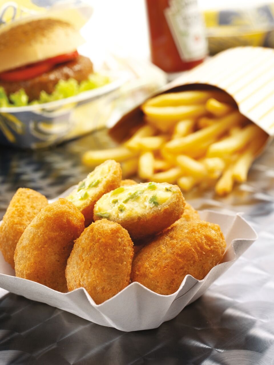 Onion Rings, Chilli-Cheese Nuggets, Chicken Wings, Chicken Nuggets, Mozzarella Sticks