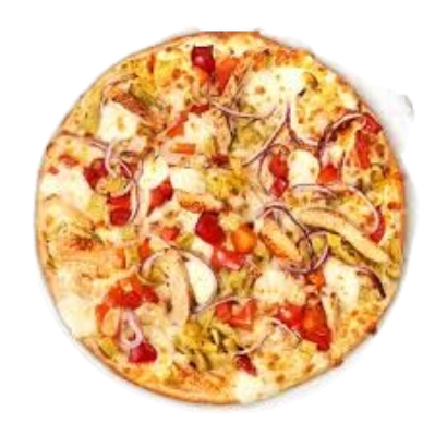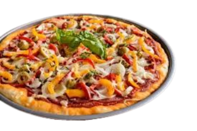mit Champignons, Paprika, Zwiebeln, Oliven, Knoblauch und Brokkoli