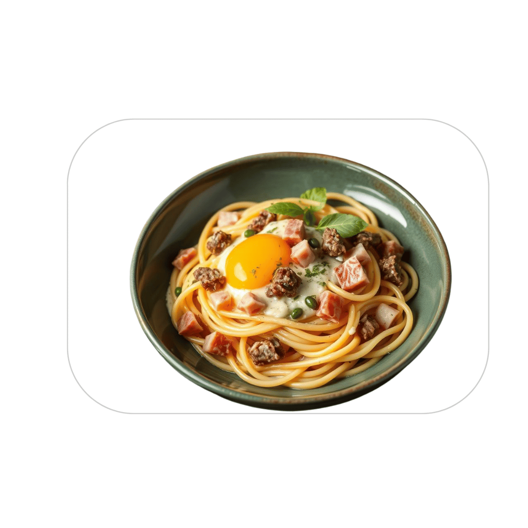 mit Sahnesoße, Rinderspeck, Eigelb und Parmesan