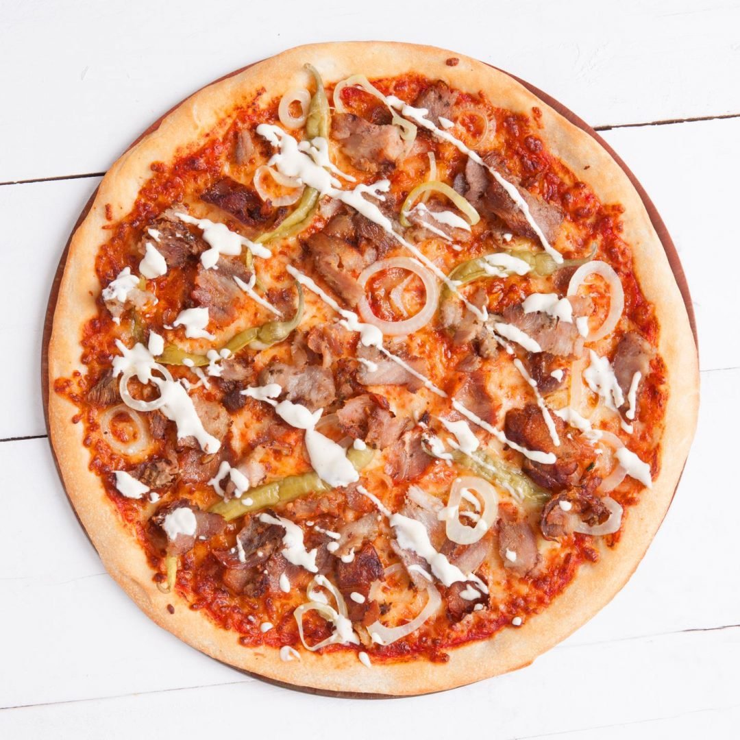 mit Dönerfleisch, Zwiebeln, Jalapenos
