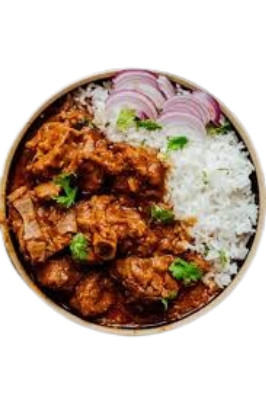 Traditionelles Lammcurry in einer würzigen Soße mit Reis serviert.