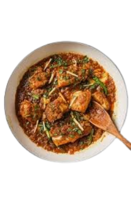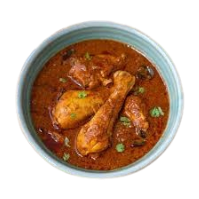 Traditionelles Hähnchencurry in einer würzigen Soße mit Reis serviert.