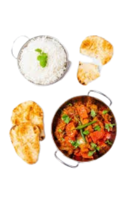 Zarte Lammfleischstücke zubereitet mit Paprika, Tomaten, Zwiebel, Ingwer und Knoblauch nach indischer Art mit Reis serviert.